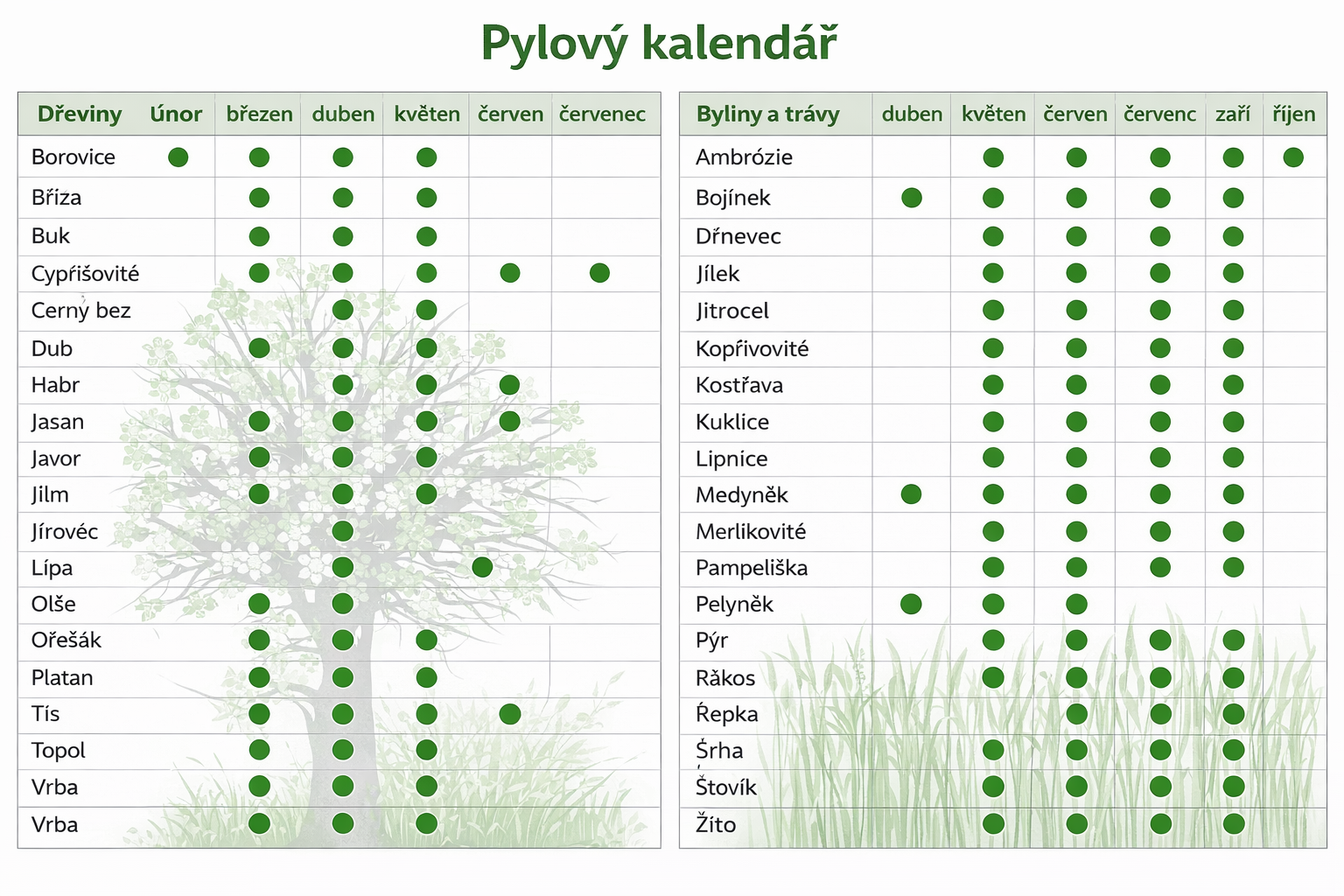 Autor: Lukáš Bareš, První pomoc záchranáře, pylový kalendář zdroj: Malyra, s.r.o.