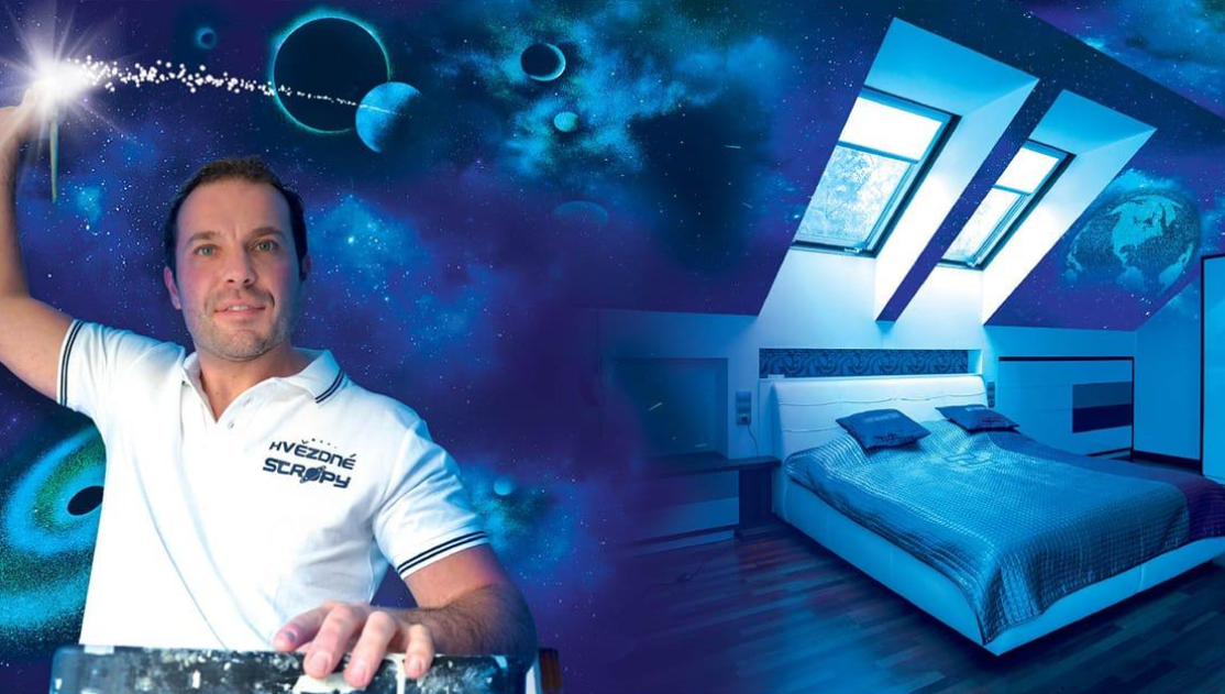 Právě s tímto principem pracuje projekt Hvězdné Stropy, který vytváří ručně malované svítivé stropy. Nejde o projektory ani blikající světla.